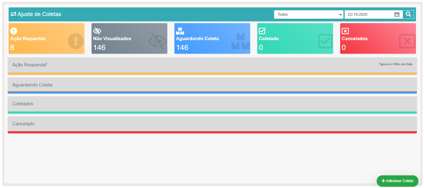 Adicionar Coletas: Cria uma coleta do tipo avulsa.