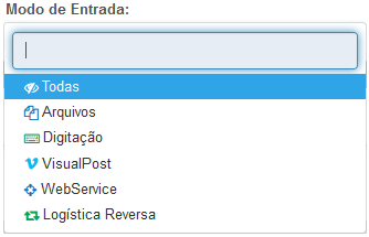 2.1 - Todas: Exibe todas as opções existentes do Modo de Entrada.