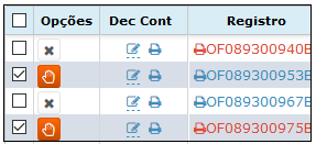 - Barra de ferramentas Objetos: Utilizado para exportar/imprimir ou interagir com os dados listados na grade.