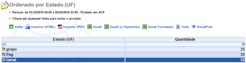 (Favoritos → Relatórios → Relatório - Por UF)