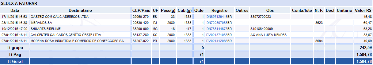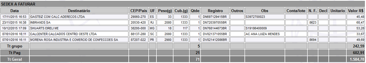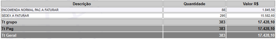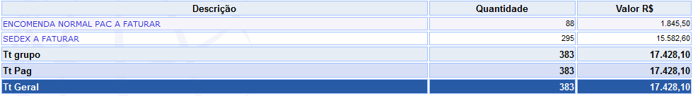 - Faturado na ECT: para visualizar dados que serem faturado pela ECT.
