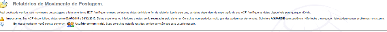 (Favoritos) A opção de Relatórios possibilita ao Usuários visualizar e exportar como dados, todas as informações de postagens e serviços efetuados pela AGF que foram disponibilizados pela mesma. As possibilidades de visualização e geração de arquivos são variadas visando suprir qualquer necessidade que o Usuário tenha.