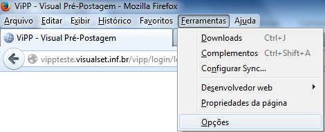 No Mozilla Firefox deve acessar o menu Ferramentas, opções
