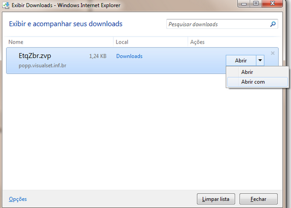 Selecione o arquivo EtqZbr.zvp e clique com botão direito do mouse e desmarque a opção “Sempre perguntar antes de abrir arquivos deste tipo”.