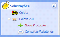 Acesse o Menu → Solicitações → Coleta 2.0 para solicitar novas coletas.