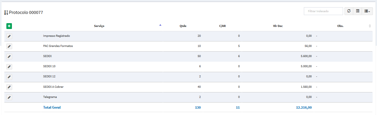No relatório de detalhamento de serviços/ Produtos é possível editar as informações ou incluir nos itens ao protocolo.
