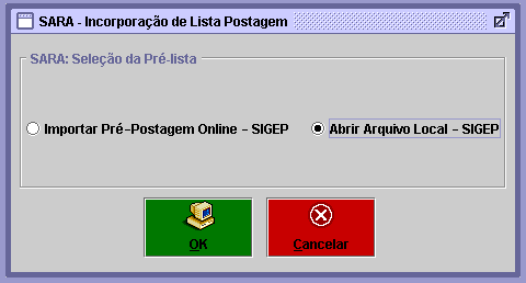 A próxima informação é relativa ao operador que deseja realizar a exportação, você poderá exportar de um operador determinado ou de todos os operadores em conjunto, depois você tem a opção de gerar os arquivos agrupados pelos cartões de postagem, isto é, caso você tenha 5 atendimentos para um determinado cliente o sistema irá criar um único arquivo de exportação do mesmo, agilizando o processo de importação dentro do Sara.