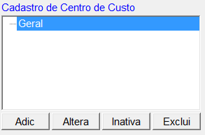 Para adicionar um centro de custo clique no botão “Adic” e o sistema irá apresentar um quadro em branco para que você possa realizar a adição.
