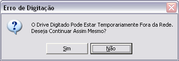 Caso a unidade de rede não esteja disponível ou o nome do caminho na rede esteja incorreto, o sistema emitirá uma mensagem avisando sobre esta falha como mostra a figura abaixo.